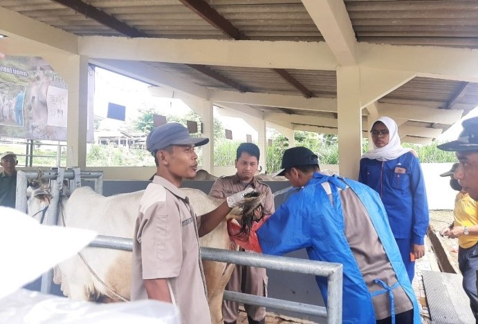 Thursday, 30 March 2023. The team of Universitas Diponegoro was join the knowledge and skills transfer of cow embryo transfer at livestock and animal health agency of central java. Lecturerof Animal Science study program Universitas Diponegoro, Dr. Ir. Yon Soepri Ondho, M.Si., as one of the lecturers that concern on embryo transfer, leads the team from Undip that composed with the 5 animal science students from the masteral degree (Mohammad Faiq Naufal) and undergraduate degree (Alfa Putri Latifa, Nur Afifah Amin Handayani, Suratman, Rizki Ardian Dwi Kurnia). This team is joining with knowledge and skills improvement of embryo transfer of Peranakan Ongole (PO) program.